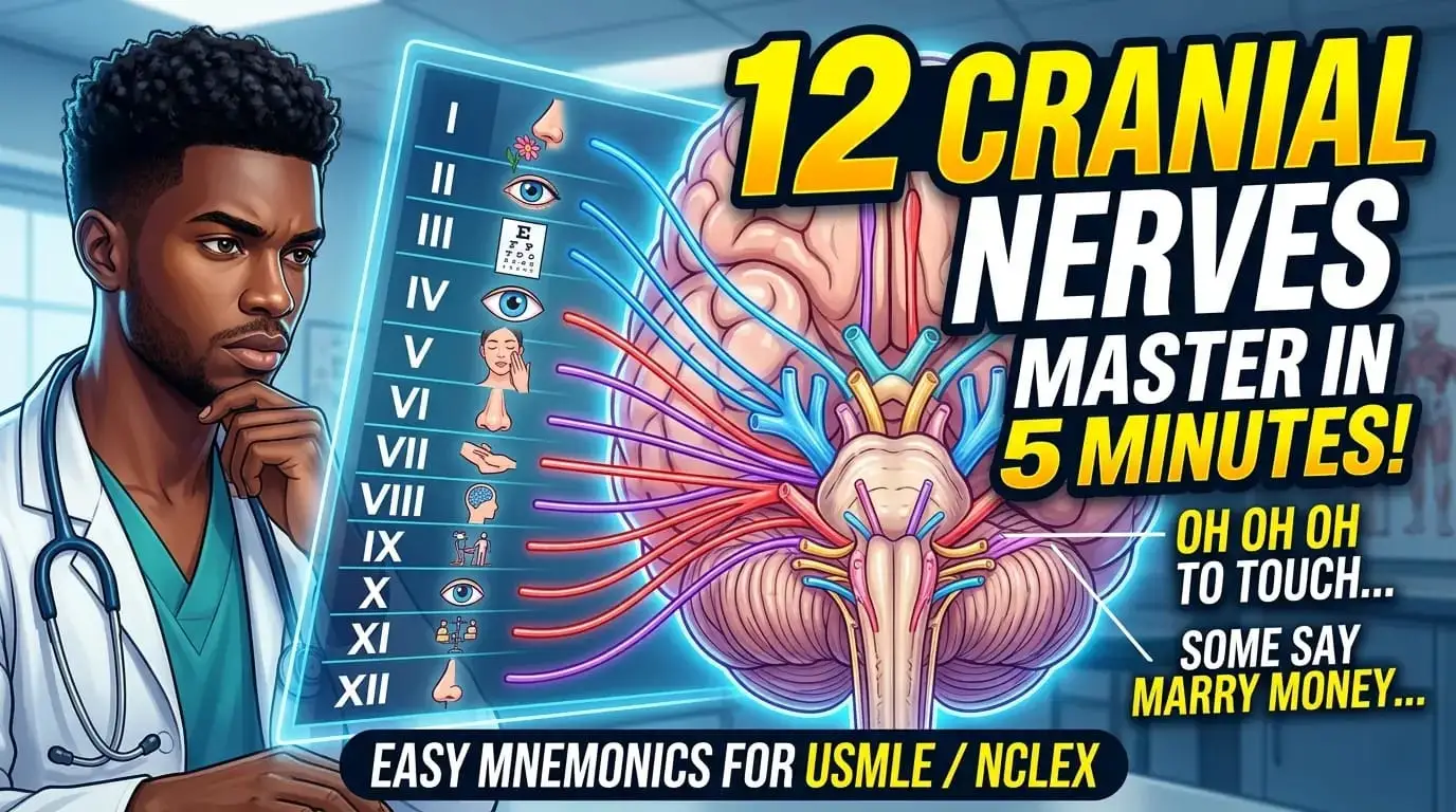 But don't worry. Welcome to another quick guide from Medicoetrick! Today, we're sharing the easiest trick to learn the cranial nerves in 5 minutes. Whether you're preparing for your university finals, NCLEX, or USMLE, these medical mnemonics will lock the information into your brain permanently.